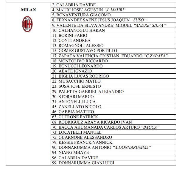 Официальный сайт «Милана» опубликовал номера, под которыми будут выступать игроки в сезоне 2017/2018.