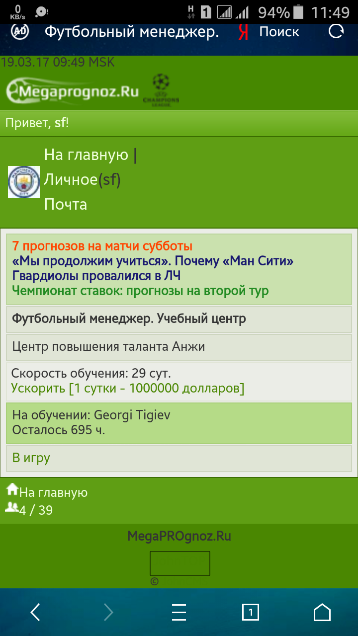 Футбольный менеджер. Учебный центр