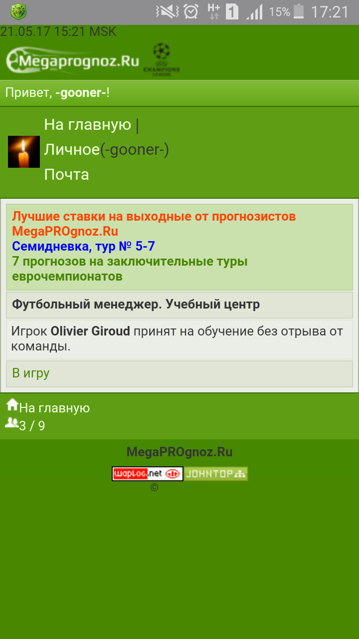 http://www.megaprognoz.ru/fman ... 07350во время матча в трансляцию надо заходить, тогда будет тп.