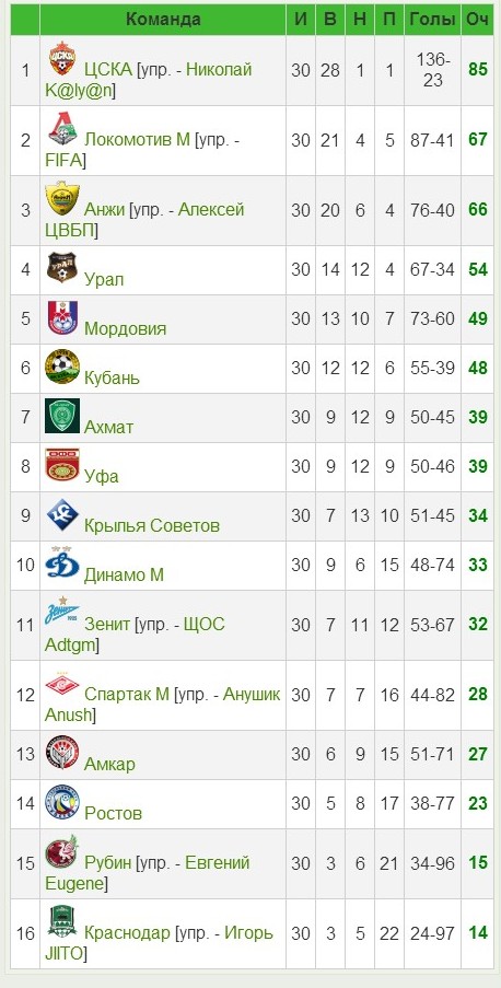 Чемпионат России, 13-й сезон: турнирная таблица