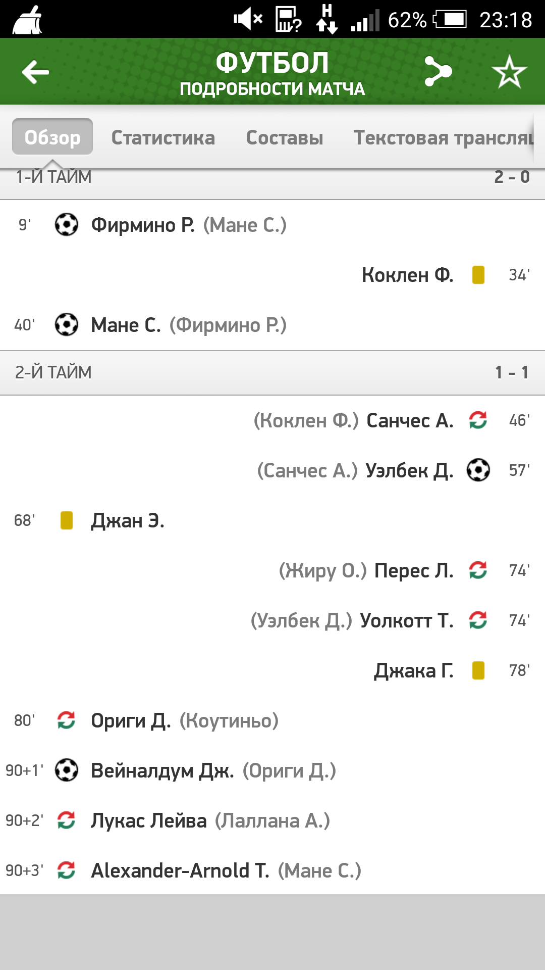 5. Гол 1 - Ливерпуль забил на 90+1 минуте, а так как в регламенте указано только по 90, доп. время к основному времени матча считаем как 90 минуту!
