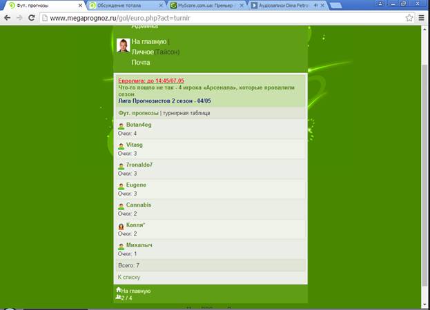 я себя в скрипте не увидел. Ставку делал точно в основном тотал с цифрой 2 ставилЗначит не угадал ничего. Смотри свои прогнозы.Ботанчег мы будем играть до осени)До лета))) дальше матчей не будет на что ставить))
