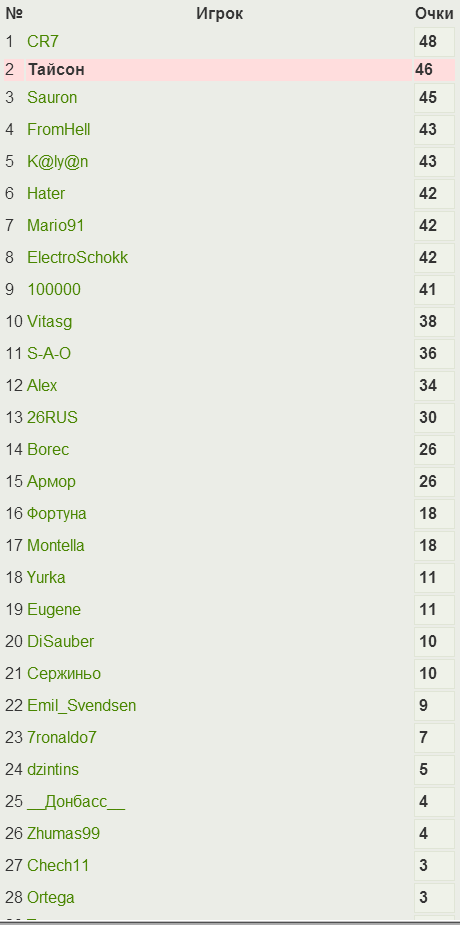 3. Один турнир сезона насчитывает в себе 10 туров, в итоге вы должны сделать 100 ставок.