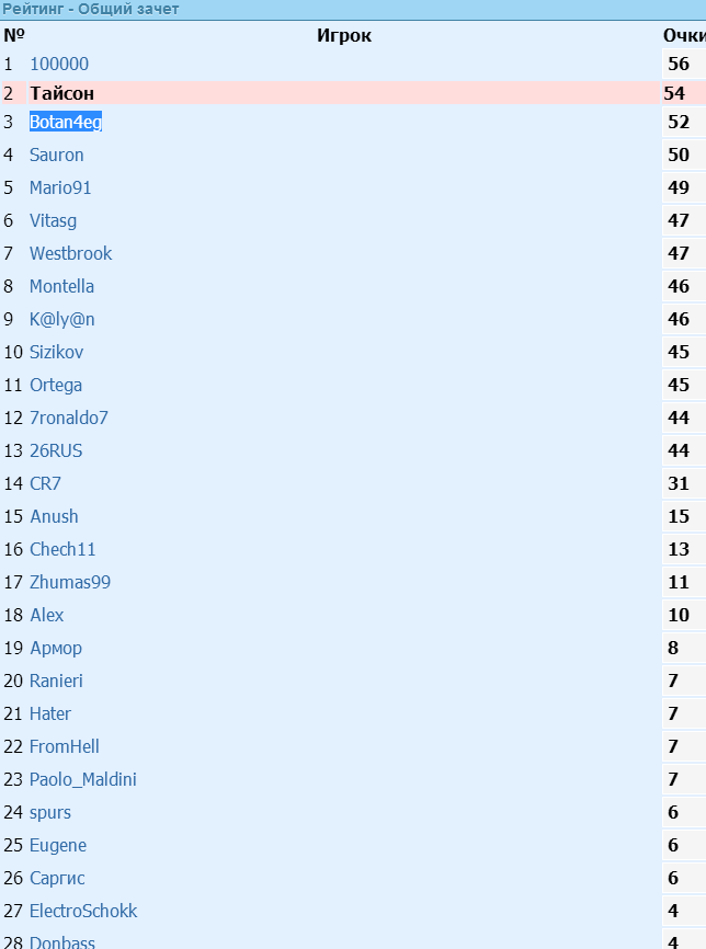 5. Ваши набранные баллы за каждый тур будут суммироваться и выводится в общем рейтинге. Лучшие игроки получать призы.