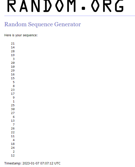 21, 14, 28, 19, 3, 20, 10, 29, 16, 15, 5, 8, 23, 17, 9, 1, 25, 30, 27, 6, 13, 7, 26, 22, 11, 4, 18, 24, 2, 12